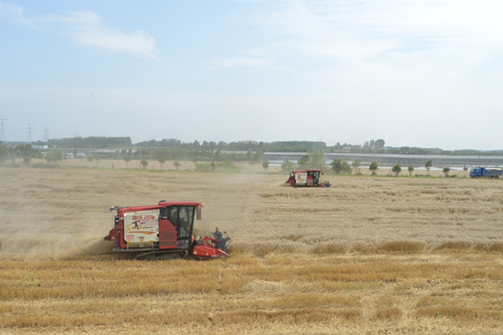 金色六月,麦浪飘香。在安徽农垦与大路村合作经营的小麦田里,多台收割机正在忙碌而有序地作业,随着饱满的麦粒从收割机喷涌而出,卸入运粮车,不到半个小时,眼前一块30亩麦田就实现颗粒归仓。“今年开春雨水较多,但是我们的小麦收成亩产还是超过850斤,比当地老百姓自己种的好很多,预计利润还是很可以的。”正在田头组织收割的网格管理员陈良元告诉前来采访的记者们。作为一名“大路模式”培养的新农人(职业农民),陈良元自家有14亩地,和其他村民一样,如今已经全部流转给村集体,委托安徽农垦经营。目前安徽农垦和大路村合作的土地面积达到4041亩,全部实施网格化管理,作为网格管理员,陈良元参与管理了其中700亩地。据他介绍,自己不仅跟着安徽农垦的农艺师学到了现代化农业种植技术,还通过农垦提供的平台,参加无人机飞防学习、培训,并顺利考证。“就我个人来说,如今算上网格员工资、村里分红以及无人机飞防的收入,每年保底增加5万元收入。”像陈良元这样通过安徽农垦平台学会田间管理、无人机飞防技术的,大路村共有6人。
