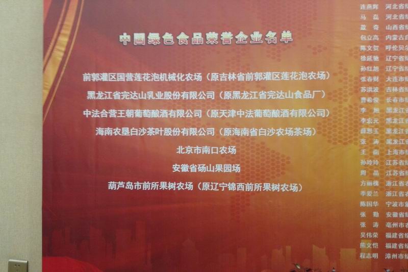 砀山果园场上榜中国绿色食品荣誉企业