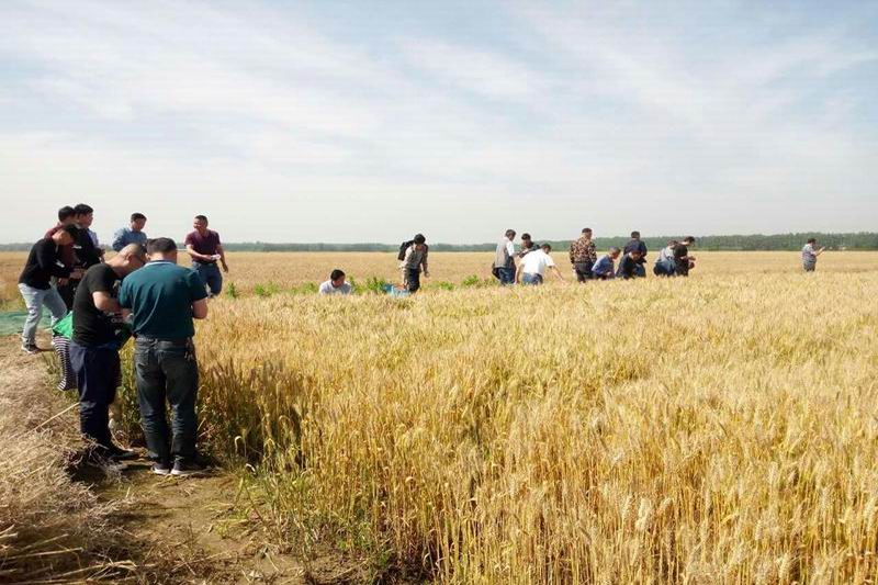 与会人员现场察看了三益分场大田种植的荆麦103,专家认为,长势喜人、穗大粒多、籽粒饱满、抗倒伏力强,田间表现令人满意,单产有望超800斤。据悉,三益回民分场自享受民族乡政策以来,把生产发展放在首位,积极调整种植结构,连续4年与宇顺种业合作开展小麦良种育繁,每年育繁3000多亩。宇顺种业对小麦生长期的原种、施肥进行全程技术指导,按市场半价供应进口除草剂和杀菌剂,按国家标准价加10%收购种子,让回民职工每亩增收100-200元。